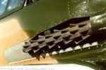 Like many aircraft initially considered less than successful, the Boomerang found its niche in another roles - particularly army cooperation and ground attack. The sparkling low level performance of the Boomerang combined with a tough structure was ideal for this alternate role. 4 and 5 Squadrons operated the Boomerang in Papua New Guinea and the Solomon Islands. In the tactical role, as well as strafing (armament being four .303 machine guns and two 20mm cannon) the aircraft were also used for artillery spotting and close support, and 'FAC' type work marking targets. It is in this later role that the type became well known to some New Zealand pilots. The 'Smokey Joes' used four 9kg (20lb) smoke bombs carried under the centre section to mark targets for RNZAF Corsair fighter-bombers. The aircraft could also carry up to a 227kg (500lb) bomb on the centreline. Other operations, like convoy patrol were common. A number of aircraft were written off in training and many operational losses were in crashes and landing incidents. The latter reflect the nature of the airstrips being used. The aircraft were often stripped of parts and subsequently dumped. One (A46-88) was shot down by US ground fire, and another (A46-136) was damaged in an attack by a P-38 flown by Lt G.R. Johnson. One aircraft from 5 Squadron RAAF (A46-189) was lost when it crashed on the target while marking it during an operation with 24 Squadron RNZAF Corsairs .