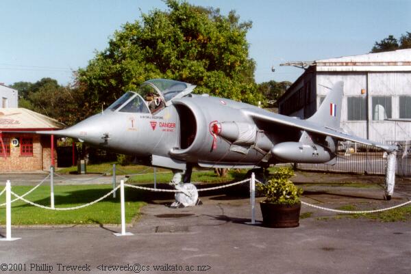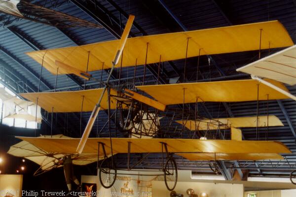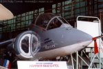 Left: Hawker P.1127 XP984 (the last of the six prototypes and forerunner of the Kestral); Right: the interior of the Avro shed with the replica 1908 Triplane (the actual 1909 Triplane IV is in the Science Museum) BAPC187.