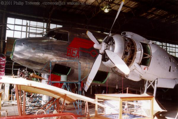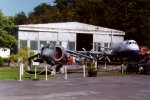 Top Left: Avro 504 (replica) G-AALA is a 'live exhibit'; Top Centre: Vickers Viking Ia G-AGRU undergoing restoration - the 1946 model initially served with BEA and after passing through several owners wound up as a roadside cafe in the Netherlands before being returned to the UK in 1979; Top Right:Hawker Harrier T.Mk.52 G-VTOL is a former company demonstrator built in 1971. Lower Left: Hawker Hunter T.Mk.7 XL621 served with 4 FTS at RAF Valley as '87'. Lower Right:Vickers Varsity T.Mk.1 WF372.