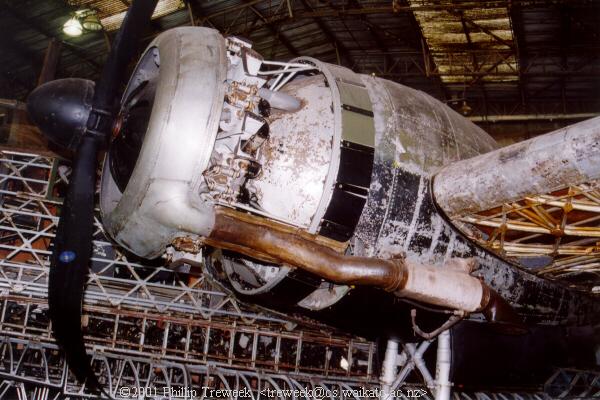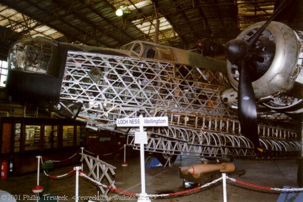Vickers Wellington Ia N2980 'R for Robert' was ditched in Loch Ness on New Year's Eve 1940 after an engine failure during a training flight. The 1939 vintage aircraft was retrieved in 1985, and has subsequently undergone many 1000s of hours of preservation work at Brooklands. Note the state of the engine cowling - this shows how careful the preservation team have had to be with the delicate airframe.