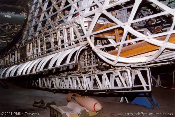 I stopped to talk to one of the volunteers, who had been showing another how a bomb release worked. This was set up on a frame with a wooden cutout bomb. Apparently it's very popular with the school visitors. He told me that the Museum had just heard that it would be receiving a lottery grant of 994,000 pounds for restoration work on the hangar.Also looked at a Hawker Fury replica which was awaiting covering. Another chance to look at 1930's construction methods.
