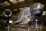 Went straight down the back to have a look at the 'Loch Ness' Wellington. The Wellington is a very rare aircraft today, and this example is the only survivor with a combat history. The conservation team have chosen to preserve rather than restore, and only a minimum of fabric has been replaced. This provides a unique opportunity to see the construction of this classic aircraft. I spent quite some time just looking at the aircraft before I got my camera out.