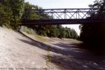 A small section of the original track remains. To the left the entrance to the original start-finish straight on which the Bellman hangar now sits can be seen from the Member's bridge. To the right is the reverse view showing the recreated members bridge above a section of track which illustrates how steep the banking was in places.