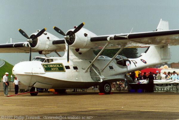 Pictured above are two Catalina's, PH-PBY in Dutch colours, and Plane Sailing's VR-BPS still showing signs of a recent advertising tour. The Goose is unfamiliar to me (details anyone?). The Dewotaine D-27 (F-AZJD) is operated by the OFMC. The Skyraider is the Fighter Collections AD-4 in the colours of VF-152 from USS Hornet. The B-17 is the inimitable 'Sally B', which still carries the nose-art for 'Memphis Belle' from the filming of the movie of the same name. The B-25D is Mitchell N88972 belonging to the Fighter Collection and the Indian head logo is clearly visible. The aircraft is displayed as KL161 of 98SQN in 1944.