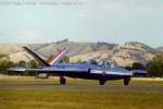 The sole example in New Zealand, ZK-FGA (c/n 216) was imported to New Zealand by Dougal Dallison in February 1998. The aircraft is a mid-series build with the original engines but fitted with hydraulic boost. It entered service with the Armee del'Air in June 1960 and was active until June 1995, accumulating 2380 hours. Rebuilt in 1983 as a light strike aircraft, it was last in service with the 8th Escadre de Chasse (8th fighter squadron) at the Centre de Tir et de Bombardement (center for gunnery and bombing) where it was used to target illuminator/ electronic target. Placed in storage, the aircraft was released in 1996. Sold to Fouga Research (Inc) in the United States, the aircraft was exported in October 1997. The aircraft came to New Zealand via the United States without being reassembled there. The aircraft was reassembled by WrightAir at Tauranga, and registered on March 17, 1998. Dougal passd away suddenly in 1999, and the aircraft was subsequently sold to a warbirds syndicate, operating as 'Caltrack Associates'