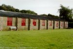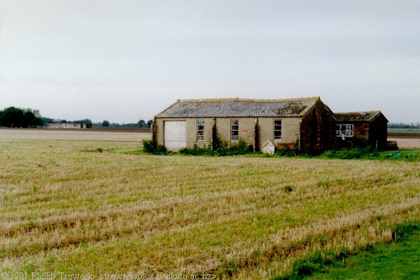 As noted above, the farm we visited was the site of one of the dispersed barrack areas. Today the former CO's house is still in use (that's where the meeting had been), but many of the other building are in poor repair. The bricks were of cheap quality, although David did note that the render appeared to be about 2:1 cement. No skimping there. He is in the process of converting some of the buildings for farm use. The original walls are being bricked around to preserve the original fabric. (One of the former Sergeant's messes is becoming a pig sty). I was surprised at the wartime design - I guess it wasn't what I'd seen in the movies. I hadn't expected the buttressing. I guess it was simple. strong, and cheap. The asbestos roofing without any spouting wasn't a surprise. We did notice that many of the farm roads dated from the war. Apparently the roads and runways were 12' concrete, with the perimeter tracks being twice as thick. The original asphalt coverings have gone however.