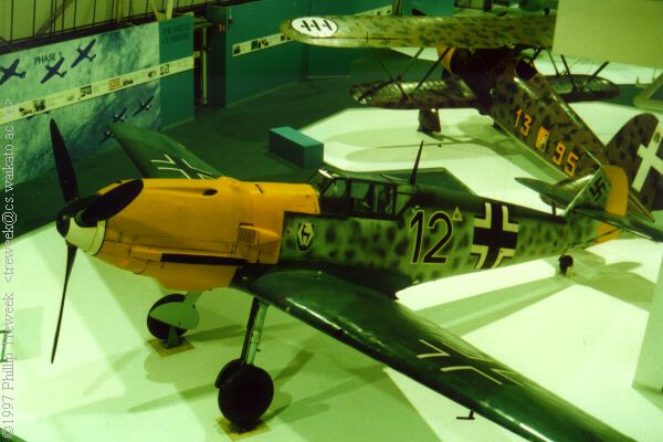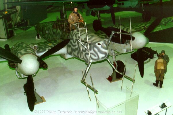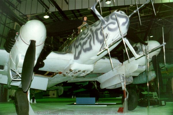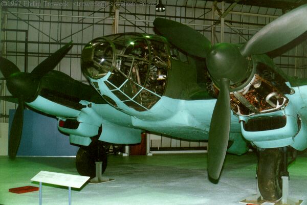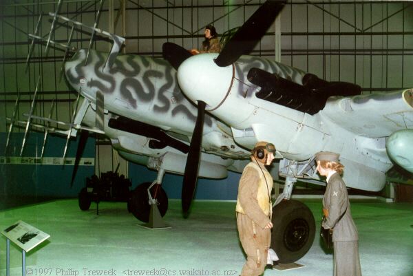 The lighting is not the best for photography, so I was pleased with the images I got. The pictures I attempted of RAF aircraft were not so good. Note the green tinge in some of the images - I was using daylight film, and working using the available fluorescent lighting. The nose of the He111 came out this way because I wanted to avoid flash reflection from all that glazing. The more normal tones are the 'flash' images.
