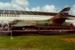 The FR.74 (c/n 517) first flew as an F.6 RAF serial XJ689 in February 1957, one of the fourth production batch (being the first batch manufactured with the leading edge wing extension). The aircraft was delivered to 5(MU) as after which it served with 14(F) squadron at Guttersloh in Germany. The aircraft was subsequently returned to Hawker Siddeley in March 1964 for conversion to FGA.9 ground attack standard, which involved a full tropical kit, gun blast deflectors, stronger inboard pylons, jettisonable guns on the outboard pylons, arrestor parachute and fitting of an Avon 207 engine. 52 F.6 aircraft underwent the conversion, and XJ689 was one of 6 aircraft in the second batch. The aircraft was then assigned to 66(F) Squadron in December 1964. Repurchased by Hawker-Siddeley in 1970 (and registered G-9-327), the aircraft was converted to FR.74A standard (one of four for Singapore under contract HSAL/68/SG/078) before delivery in August 1971. During its service the aircraft was upgraded to FR.74B standard. The aircraft made its last in-service flight in 1992.