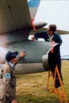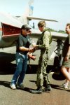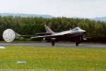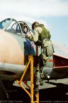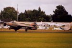 This aircraft was put under restoration to flying status at Ardmore with Aero Technology Ltd, and on April 13, 2000, made its first civil flight as ZK-JIL. In the hands of the late Sir Kenneth Hayr the aircraft made a high speed taxi, then returned to the holding point before making its first test flight, which terminated at Auckland International Airport. The takeoff was reported as 'loud' and attracted attention all over Ardmore. Sir Kenneth subsequently carried out the test programme. The aircraft is now based at Ardmore. Radio problems meant the aircraft was not displayed at Wanaka in 2000, but it did make its airshow debut at the Warbirds over Taupo show in March 2001. With insufficient runway length at Taupo, the aircraft was operated from Hamilton. Display pilot Sir Kenneth was also participating in the show with his Yak-52 which necessitated his flying north at the end of the aerobatics display to launch the jet. (illustrated below). Subsequently retrieved by David Phillips on April 5, the aircraft made a wheels up landing at Ardmore. Fortunately damage was 'minor', being sustained by the two underwing fuel tanks, along with the port flap and underbelly Doppler radar housing. Cautious maintenance crew required the stripping down of a number of systems, but the aircraft was only out of the air for a few months. The aircraft has subsequently appeared at a number of NZ airshows. (illustrated below).