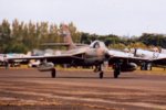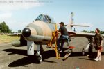 Part of the Hunter's success was the continued development through the 1950's and 60's. The Avon powered F.4 and Sapphire F.5 versions carried more fuel and weight. The F.6 was again more powerful, and featured AVPIN rather than cartridge starting. The T.7 was a two seater based on the F.4. First flown in 1955, it entered service in 1958. The T.8 was based on the T.7, featuring an arrestor hook (airfield only) and other modifications for FAA use. The FGA.9 was developed for ground attack, with a stronger wing and provision for more external fuel capability, and entered service in January 1960. This was followed by the FR.10, a reconnaissance version, and the GA.11/PR.11 were again for the FAA. In the 1960's Hawker Siddeley acquired a number of airframes for remanufacture - developing a number of models with a range of features from earlier designations. Operators outside the UK included Abu Dhabi, Belgium, Chile, Denmark, India, Iraq, Jordan, Kenya, Kuwait, Lebanon, the Netherlands, Peru, Qatar, Saudi Arabia, Singapore, Sweden, Switzerland, and Zimbabwe. It is a testament to the aircraft that some military operators continued to use the aircraft into the 1990's. Although most have now been retired, a few are still in work - such as with the Empire Test Pilot School, and a small number are now operated privately.