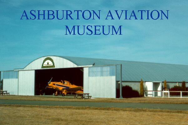 Ashburton Airport This museum has been on my list 'to visit' for some time, so I was very pleased when Museum Society member Doug George contacted me in early 1998. He wanted to check out the chances of enlarging the entry for the Museum posted on this website, and so I made arrangements to visit on my way south to the Warbirds over Wanaka airshow. The result was a very pleasant couple of hours being toured round the facility. My thanks to Doug and his fellow members.