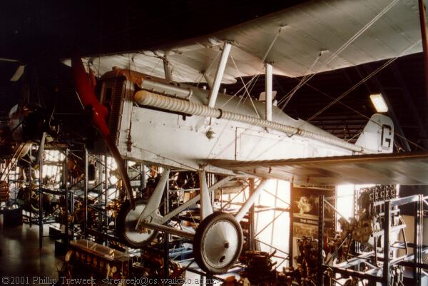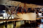 Left: A.V. Roe's Triplane IV, his first successful design which flew 984' in 1909 utilising a 9hp motorcycle engine; Centre: Alcock and Brown's Vickers Vimy IV in which they crossed the Atlantic on June 14-15, 1919 in a 16 hour flight. After being damaged by a landing in an Irish bog, the aircraft was rebuilt by Vickers and presented to the Museum; Right SE5a G-EBIB- one of a fleet used by Major Jack Savage for skywriting (such as the famous Persil advertising) in the 1920s