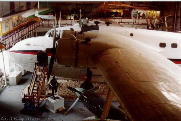 I wandered round the Aviation Hall at floor level, and then on the mezzanine floor photographing the Sandringham. I then toured the interior of the aircraft, finishing up with the flight-deck, as I had arranged earlier with the museum staff. I found it quite an exhilarating experience. The aircraft seemed very familiar - having been on the flight deck of a Sunderland. The Sandringham was very similar, but had been customised somewhat by its last operator. I couldn't help but compare the passenger compartments with those of Solent IV ZK-AMO