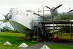 Sunderland: The S-25 Sunderland was a development by Shorts of the 'C' class flying boat. Intended to meet a specification for a 4-engine coastal patrol/ long range reconaissance aircraft, production was ordered by the Air Ministry in March 1936 even before the prototype was complete. The design incorporated Fraser-Nash turrets in the nose and tail, a re-positioned flight deck to accomodate the changes to the nose, and a sweep back on the wings to allow for a shift in the centre of gravity. The fuselage was split in two decks with a bomb room beneath the wings - bombs or depth charges being winched out on racks below the wings. The crew comforts included rest bunks, a galley with two primus stoves, and a naval style flushing head. The prototype (K4774) flew in October 1937, and the type entered service with the RAF in the following year. The aircraft was produced as a Mk.1 with Pegasus XXII engines (75), Mk.II with more powerful XXIII engines (58), Mk.III with modified planing hull and a dorsal turret (407), and in 1943 the Mk.V with 1200 hp P&W R-1830 Twin Wasp engines (143). The Mk.IV was later designated the Seaford and was the progenitor of the Solent (1 completed as a Seaford, 6 converted to Solents).